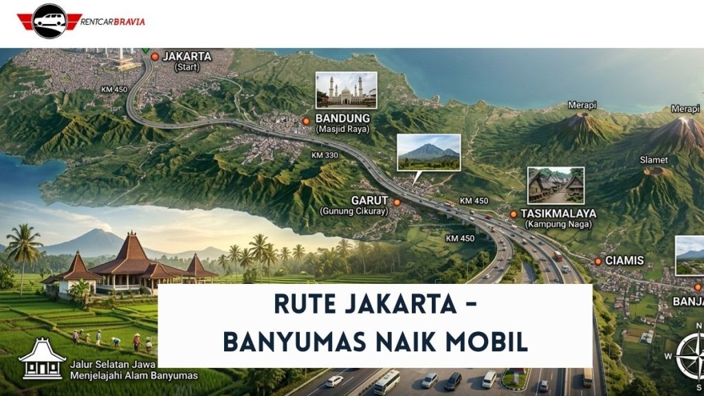 Panduan rute Jakarta–Banyumas naik mobil lengkap dengan estimasi waktu, biaya tol, dan tips perjalanan aman.